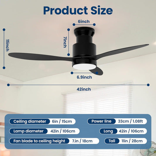 Low Profile Ceiling Fan with Lights and Remote Dimmable Flush Mount Fan with 3 Color Temps, Quiet 6-Speed DC Motor, 4H Timer, Reversible Airflow for Bedroom Living Room Ultra-Quiet 6-Speed DC Motor: Enjoy powerful airflow with minimal noise. The energy-efficient 30W DC motor offers 6 speed levels and ultra-quiet performance—from...