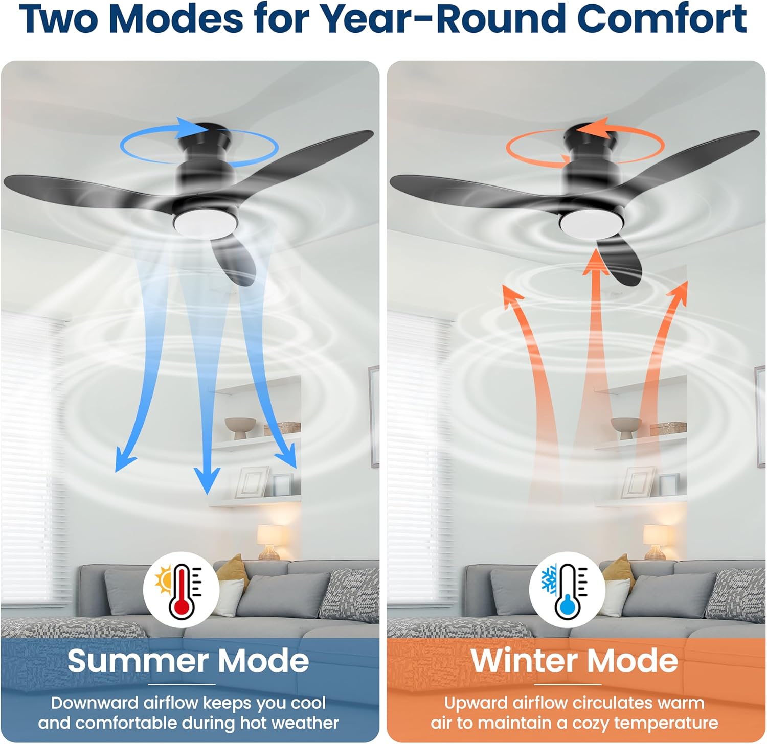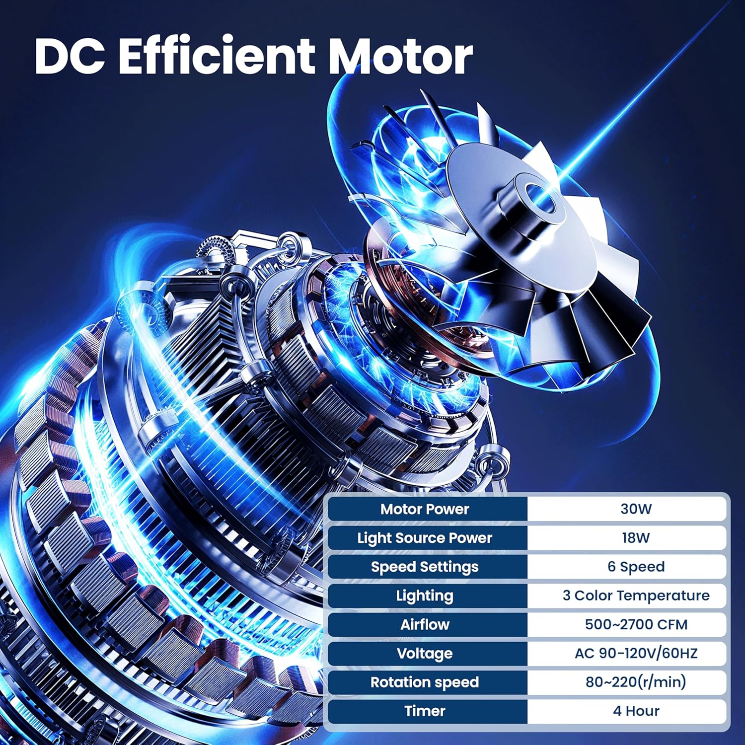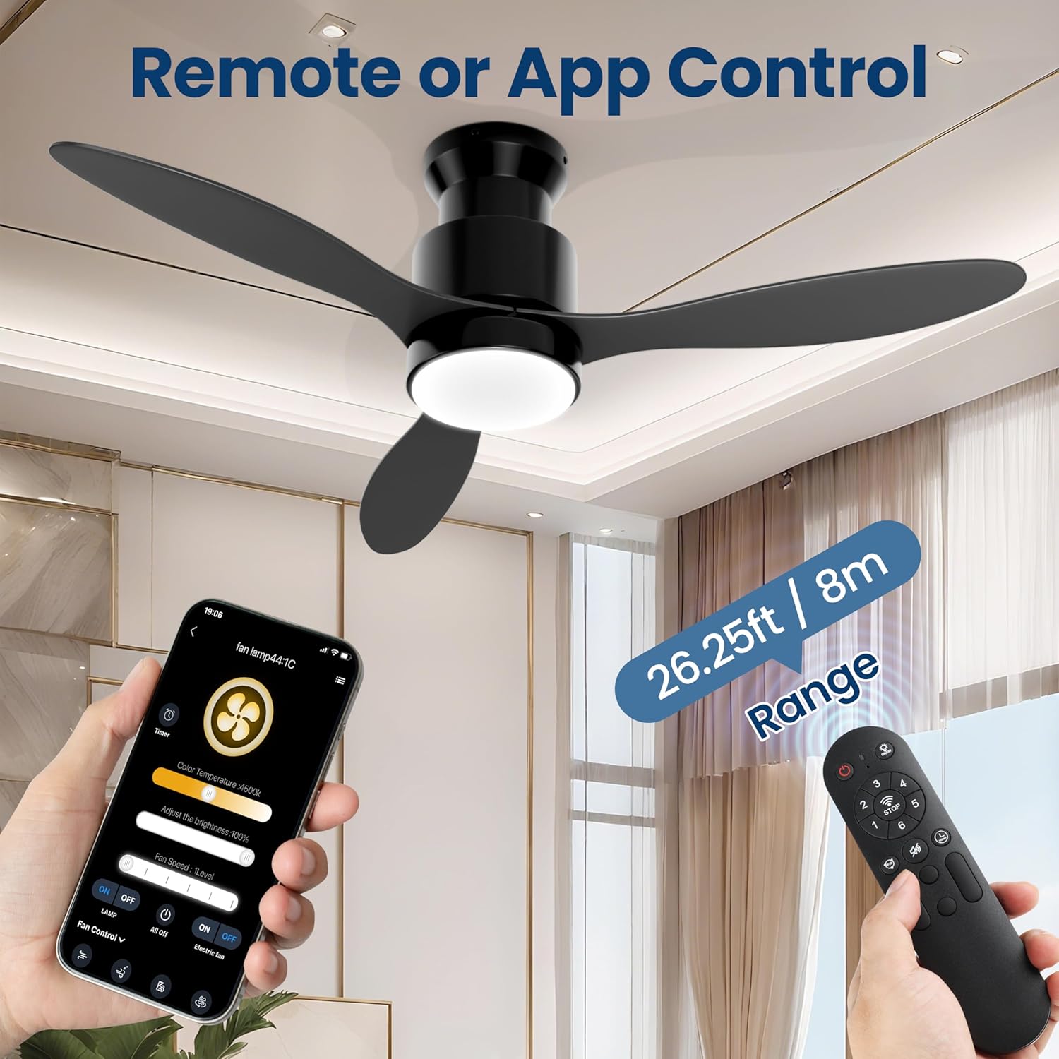 Remote & App Control: Control fan speed, light color, timer, and rotation direction with either the included remote (26ft range) or your smartphone via app. Total comfort is just a tap away.