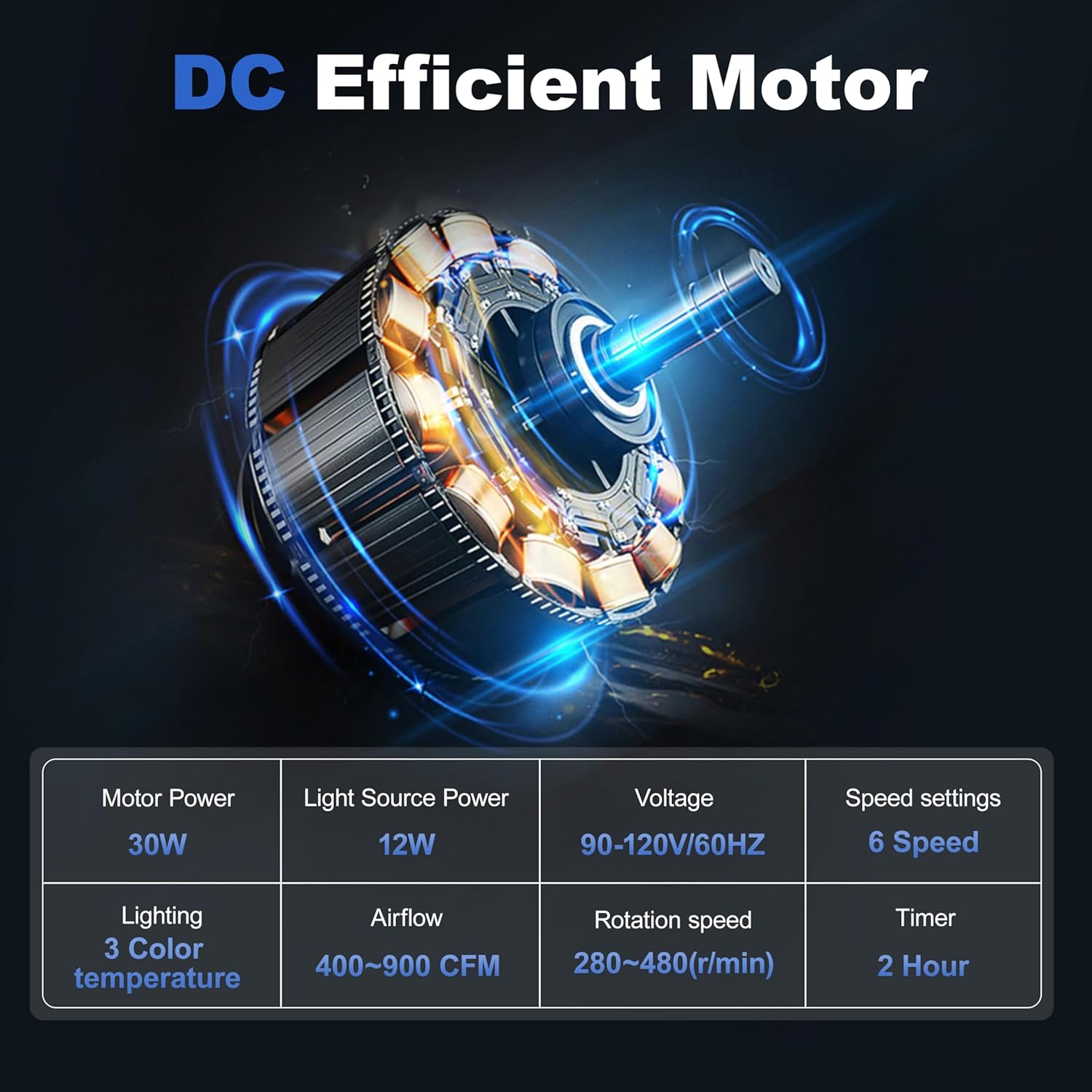 Ultra-Quiet 6-Speed DC Motor:Enjoy powerful airflow with minimal noise. The energy-efficient 30W DC motor offers 6 speed levels and ultra-quiet performanceβfrom 30dB on low to just 45dB on high.