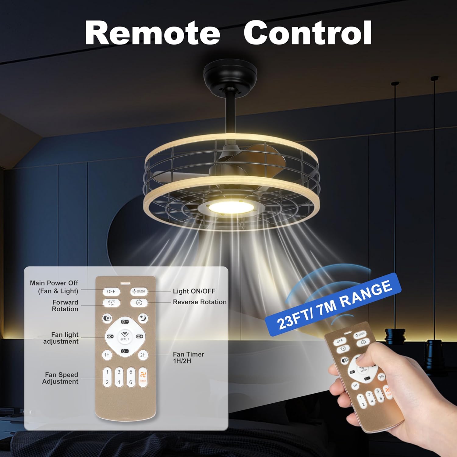 Remote & App Control: Control fan speed, light color, timer, and rotation direction with either the included remote (26ft range) or your smartphone via app. Total comfort is just a tap away.